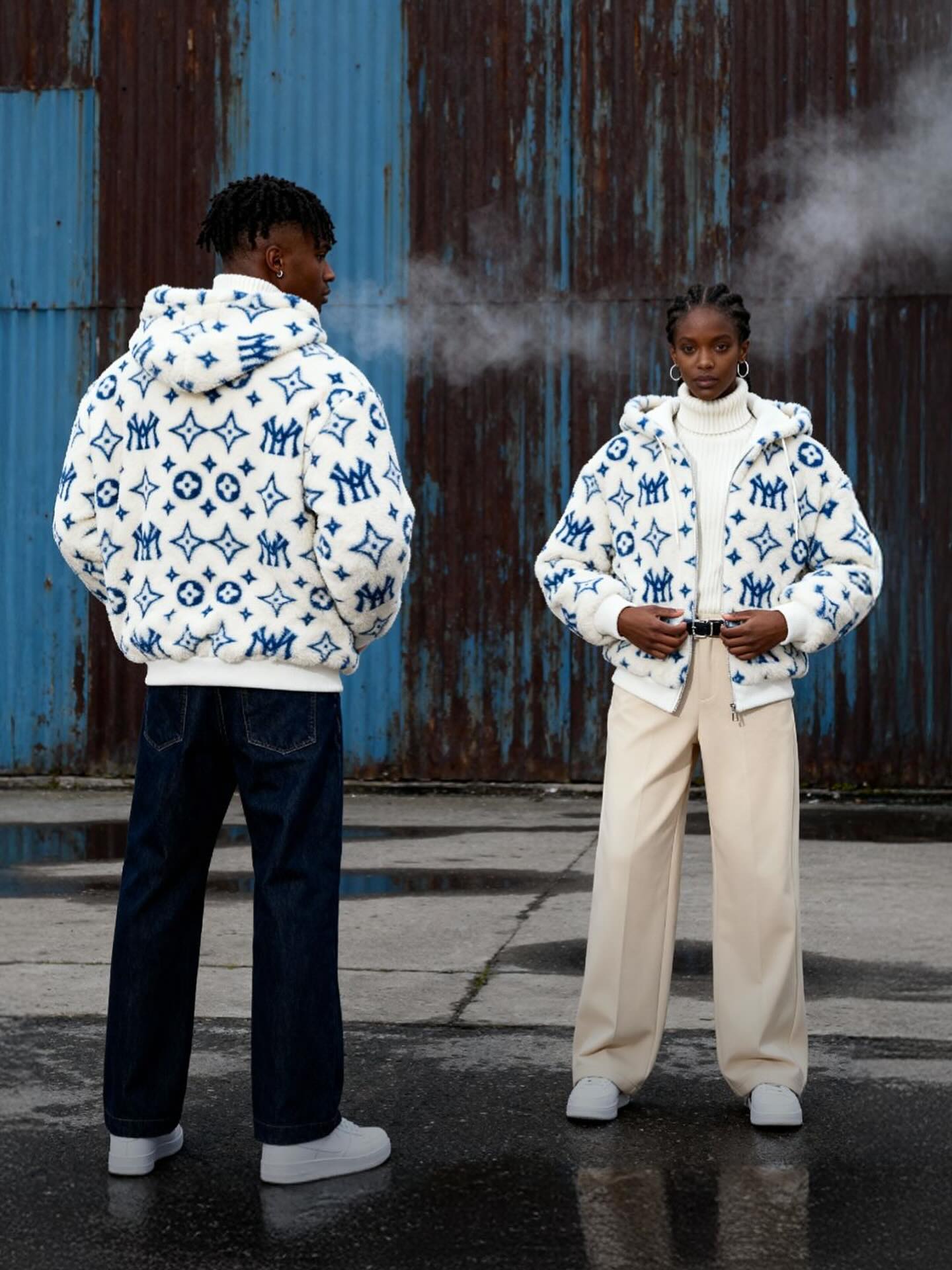 MINK HOODED JACKET (CREAM & BLUE)