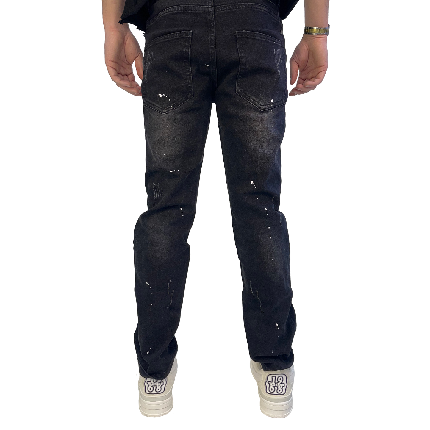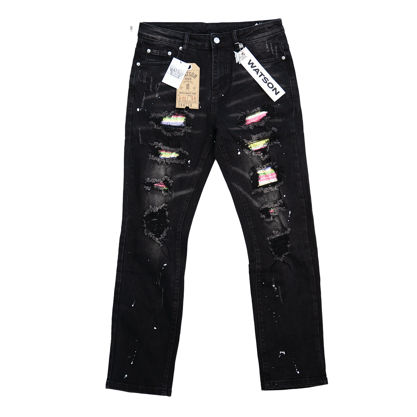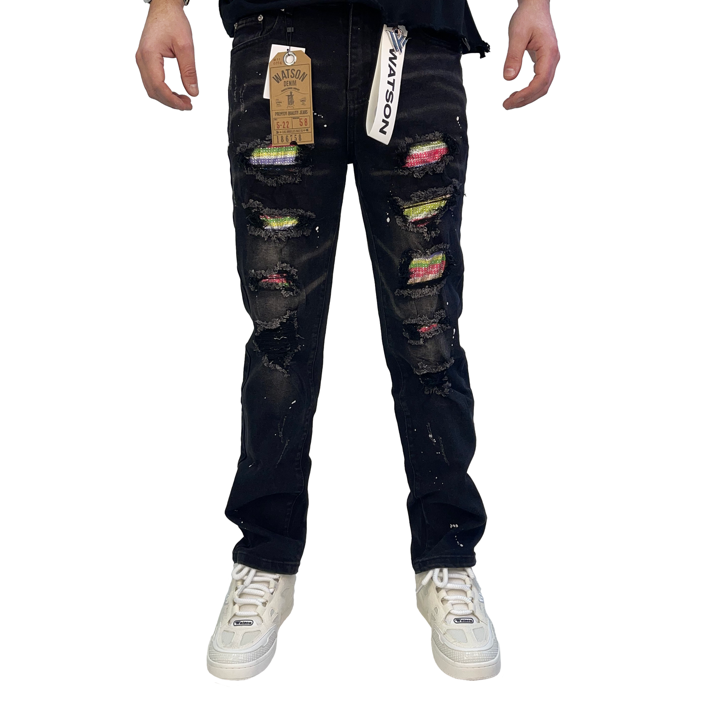 BLACK DISTRESSED MULTI RIP DENIM