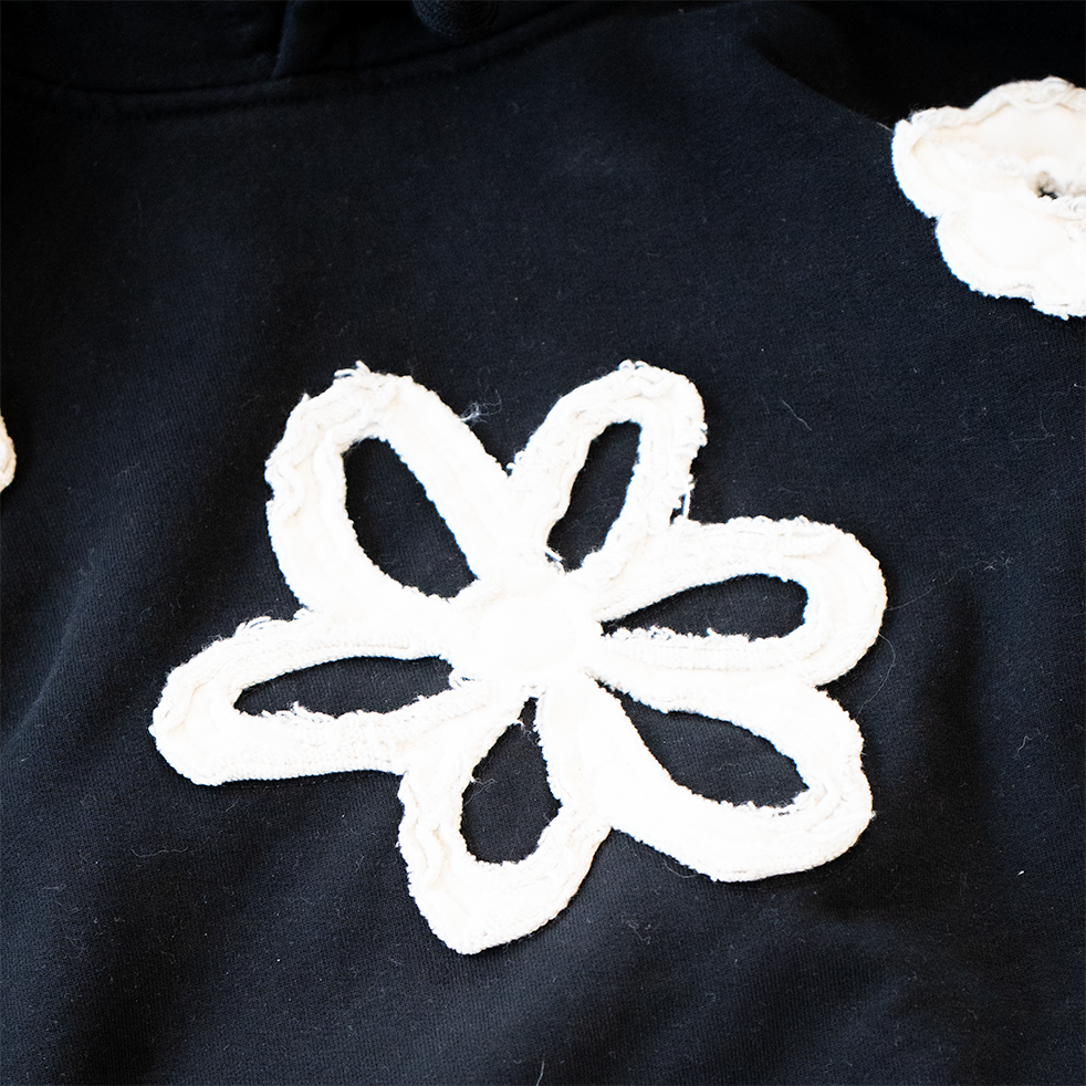 FLOWER APPLIQUE HOODIE (BLACK)
